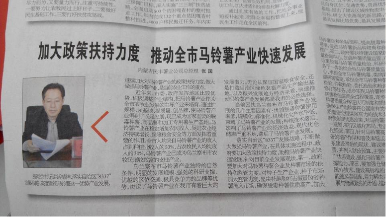 張國表示,民豐薯業將堅定貫徹總書記講話精神,落實自治區“8337”發展戰略,充分發揮龍頭企業帶動、幫扶作用,為推動我市馬鈴薯產業快速發展做出新貢獻。